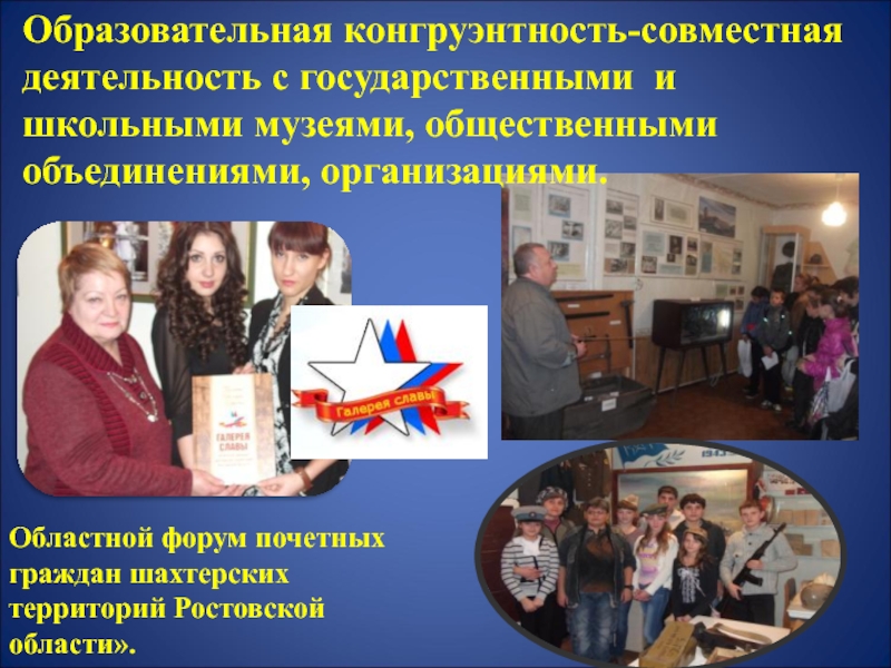 Образовательная конгруэнтность-совместная деятельность с государственными и школьными музеями, общественными объединениями, организациями.