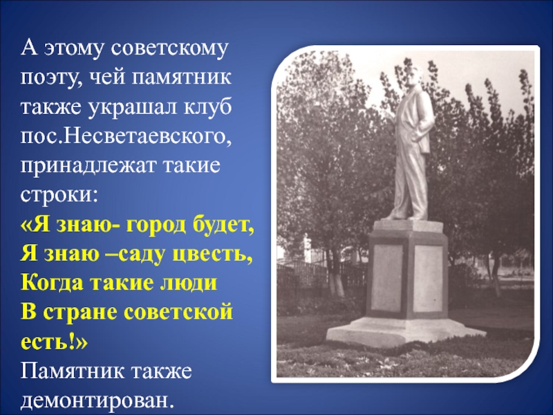 А этому советскому поэту, чей памятник также украшал клуб пос.Несветаевского,