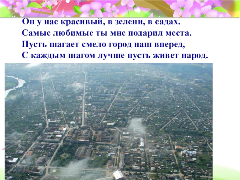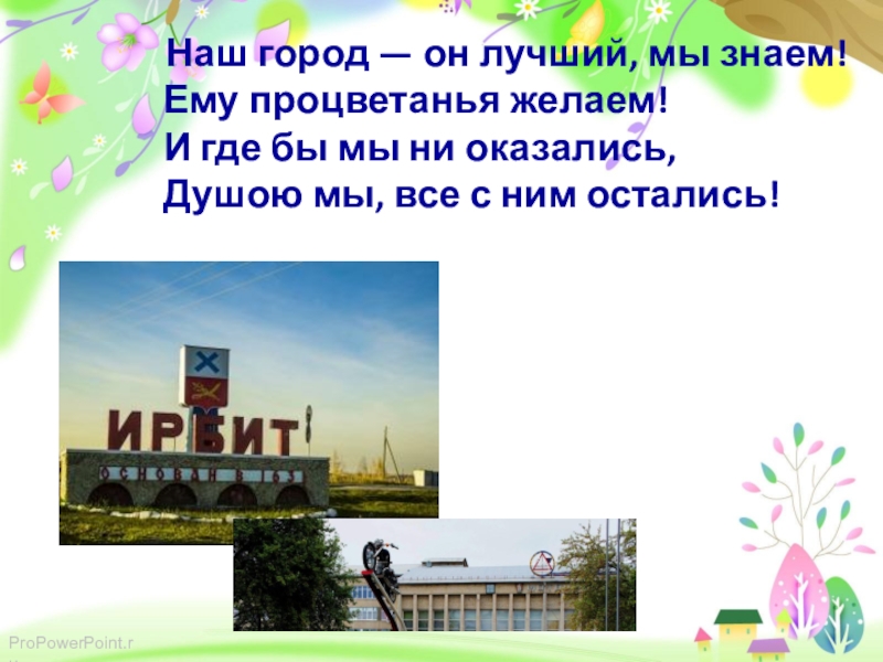 Наш город — он лучший, мы знаем! Ему процветанья желаем! И где бы мы ни