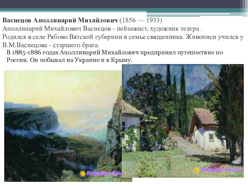 Слайд 14Васнецов Аполлинарий Михайлович (1856 — 1933)