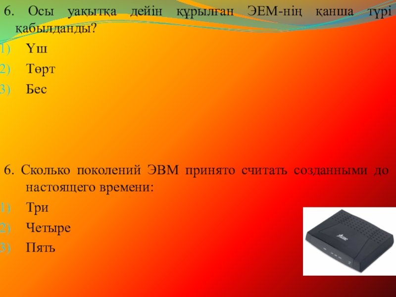 Слайд 436. Осы уақытқа дейін құрылған ЭЕМ-нің қанша түрі қабылданды?