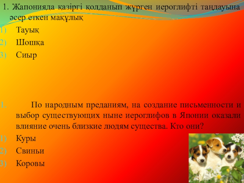 Слайд 333. Жалпы адамдар өздерінің қауіпсіздігін сақтау үшін ит ұстаған. Ал жапондықтар