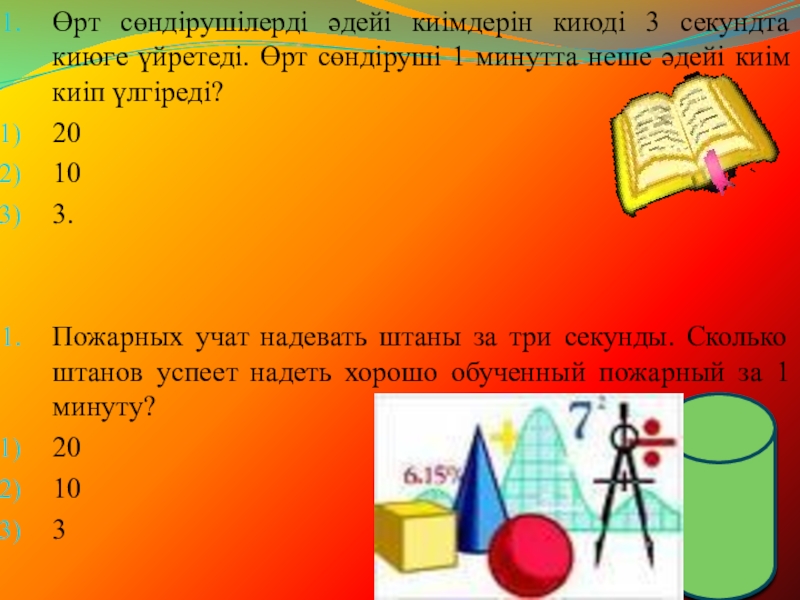 Слайд 10Өрт сөндірушілерді әдейі киімдерін киюді 3 секундта киюге үйретеді. Өрт сөндіруші