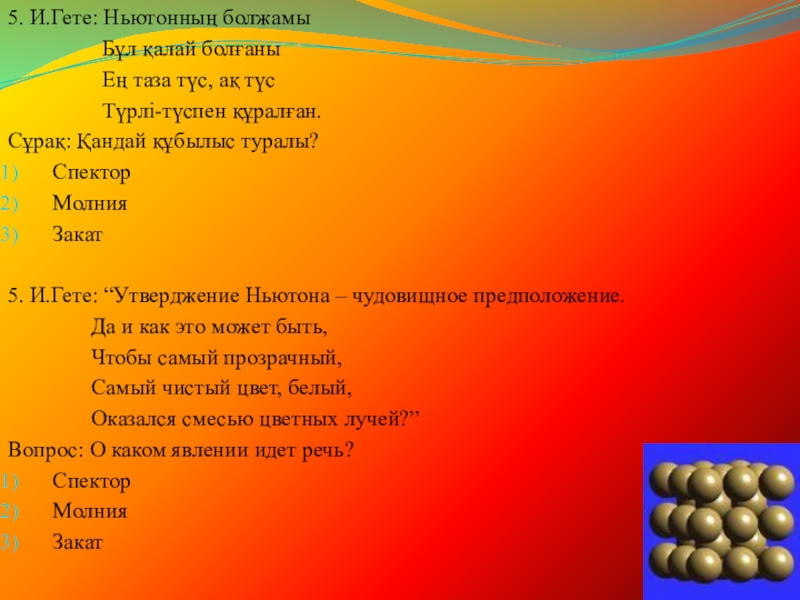 5. И.Гете: “Утверджение Ньютона – чудовищное предположение.