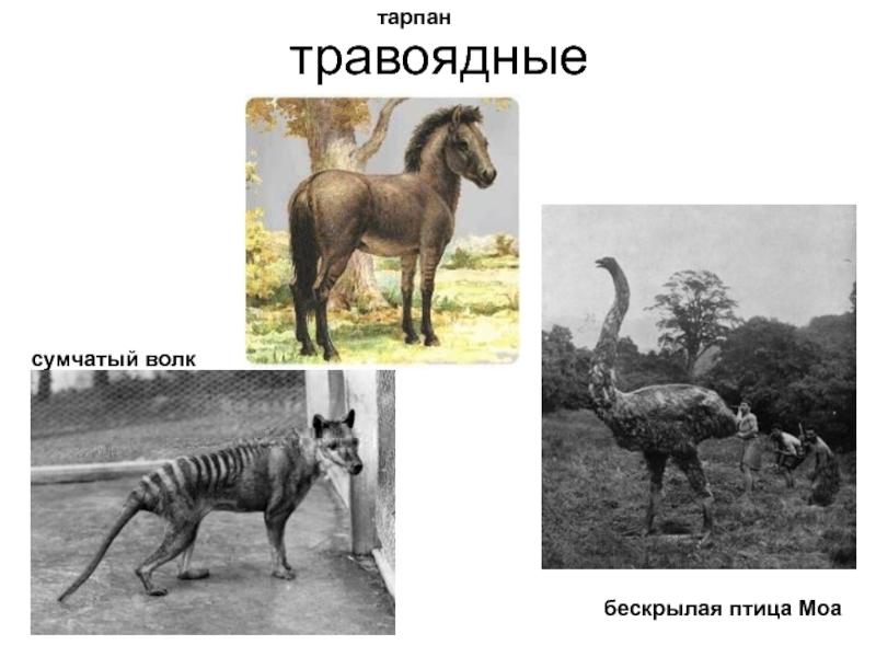 травоядныетарпан бескрылая птица Моа  сумчатый волк