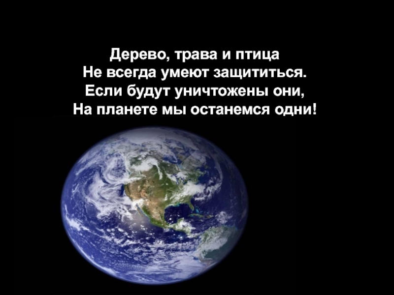 МЕСТА ЗЕМЛИДерево, трава и птица Не всегда умеют защититься. Если будут уничтожены они, На планете мы останемся