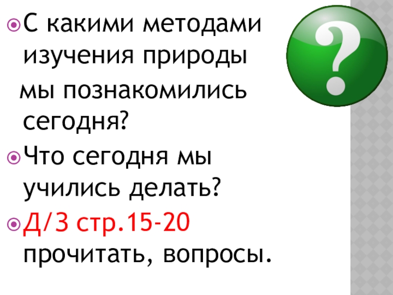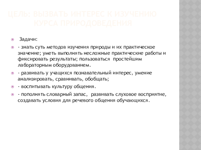 - знать суть методов изучения природы и их практическое значение; уметь выполнять несложные практические работы и фиксировать результаты; пользоваться простейшим лабораторным оборудованием.