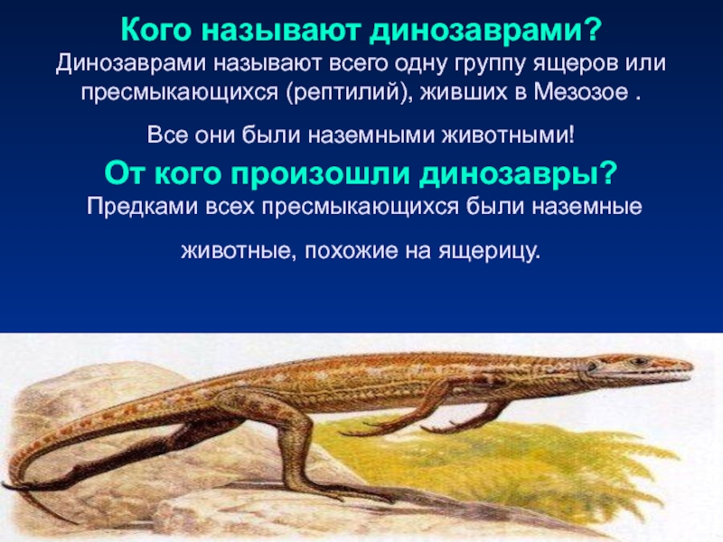 Предками всех пресмыкающихся были наземные животные, похожие на ящерицу.