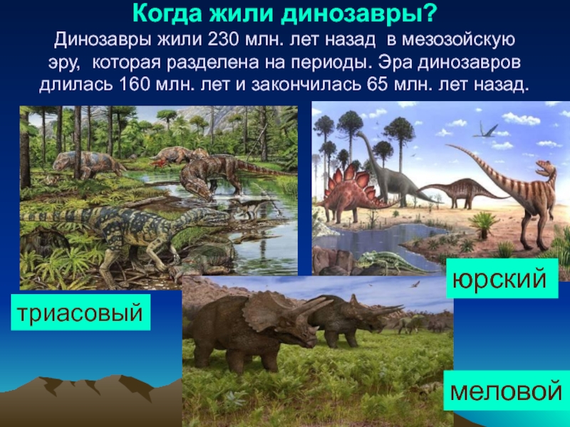 Динозавры жили 230 млн. лет назад в мезозойскую эру,
