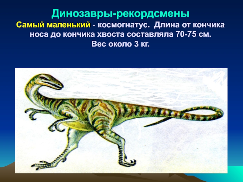 Самый маленький - космогнатус. Длина от кончика носа до кончика хвоста