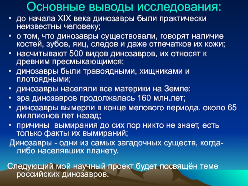 Следующий мой научный проект будет посвящён теме российских динозавров.