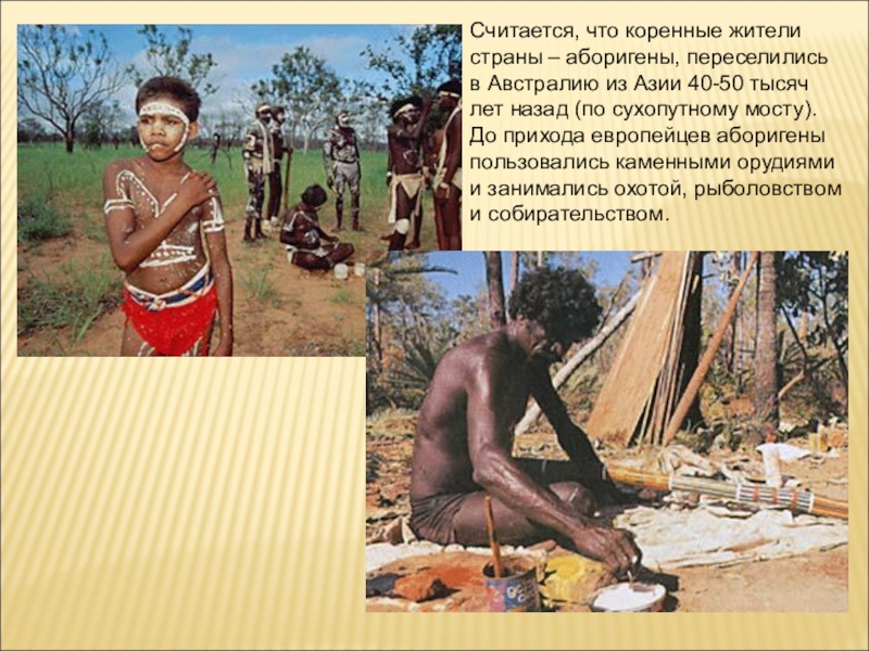 Слайд 43Считается, что коренные жители страны – аборигены, переселились в Австралию из