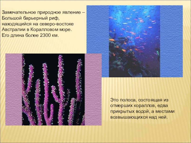 Это полоса, состоящая из отмерших кораллов, едва прикрытых водой, а местами возвышающихся над ней.