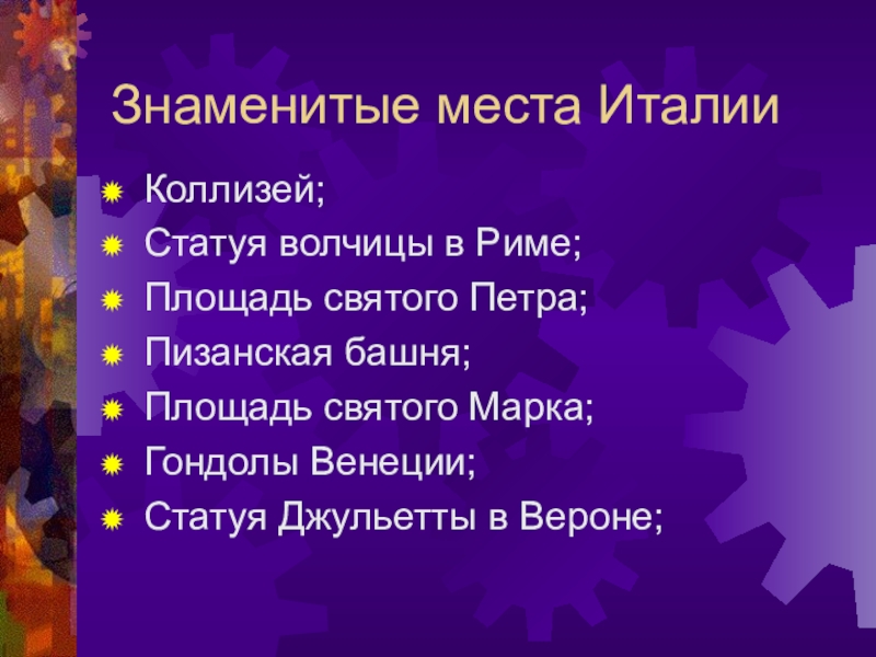 Слайд 16Знаменитые места Италии