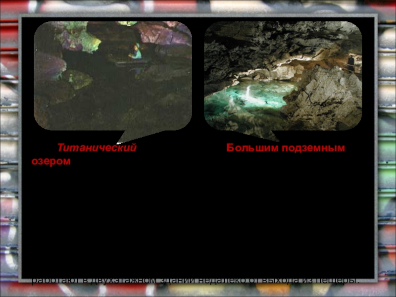 Слайд 16Грот Титанический интересен еще и Большим подземным озером. Кому-то озеро, благодаря
