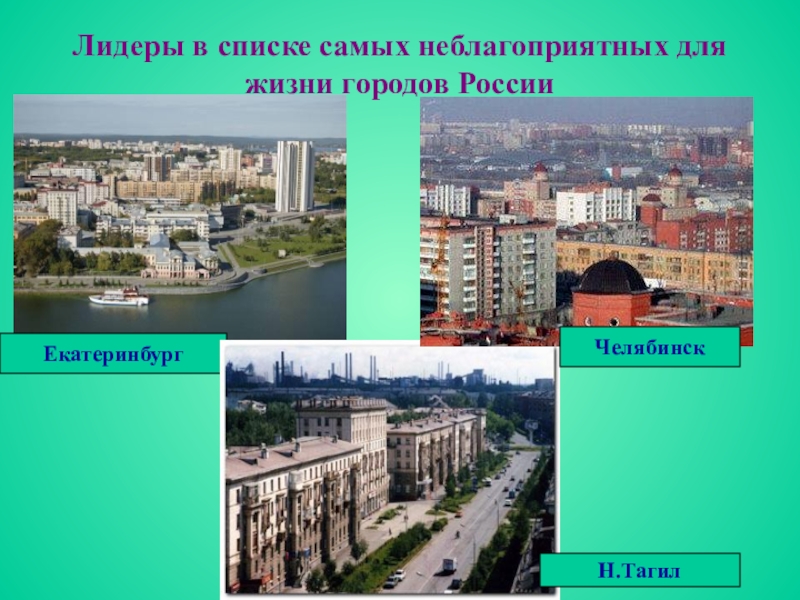 Слайд 28Лидеры в списке самых неблагоприятных для жизни городов России