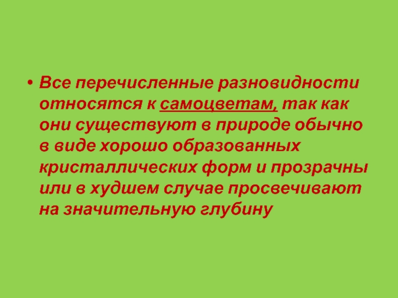 Слайд 80Все перечисленные разновидности относятся к самоцветам, так как они существуют в