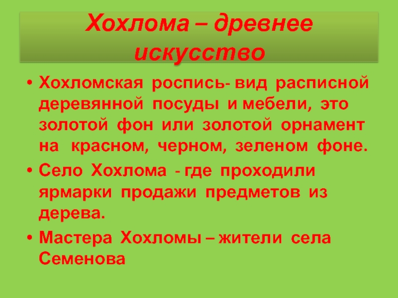 Слайд 13Хохлома – древнее искусство