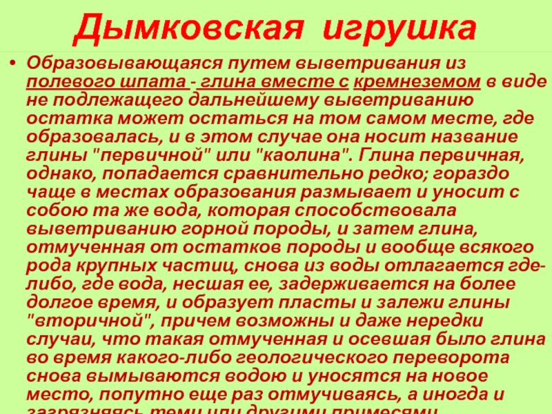 Образовывающаяся путем выветривания из полевого шпата - глина вместе с