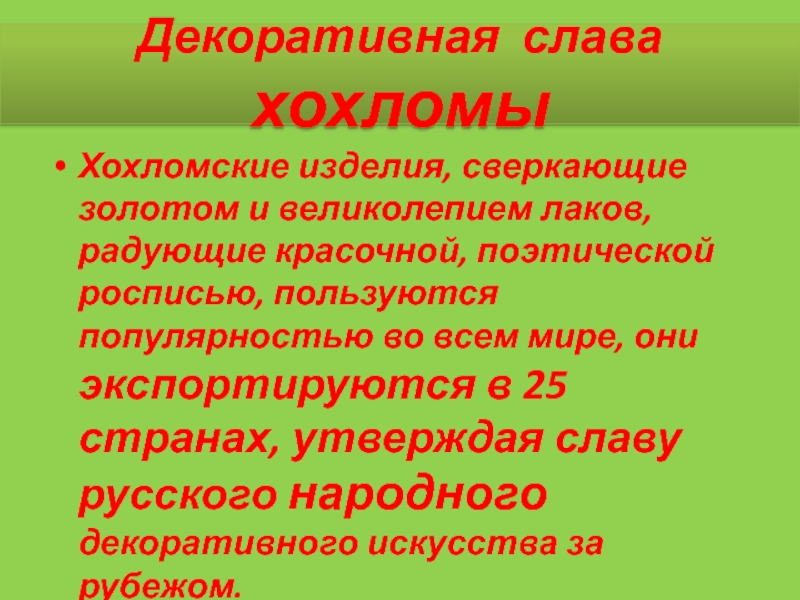 Слайд 24Декоративная слава хохломы