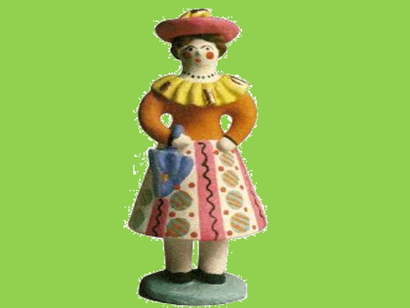 скульптуру. Такие изделия изображали людей и животных в действии. Иногда возникали целые сцены из жизни города и деревни: красавицы на прогулке или за какой-нибудь работой, традиционные чаепития, петушки с курицами, птички.