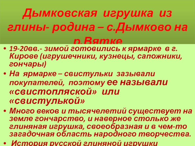 Слайд 54Дымковская игрушка из глины- родина – с.Дымково на р.Вятке