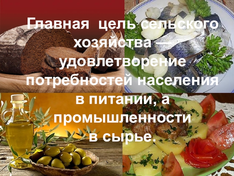 Слайд 2Главная цель сельского хозяйства — удовлетворение