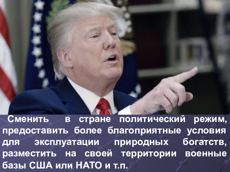 эксплуатации природных богатств, разместить на своей территории военные базы США или НАТО и т.п.