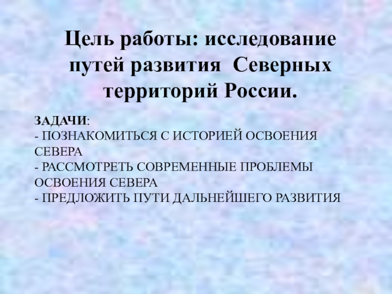 Цель работы: исследование путей развития Северных территорий России.