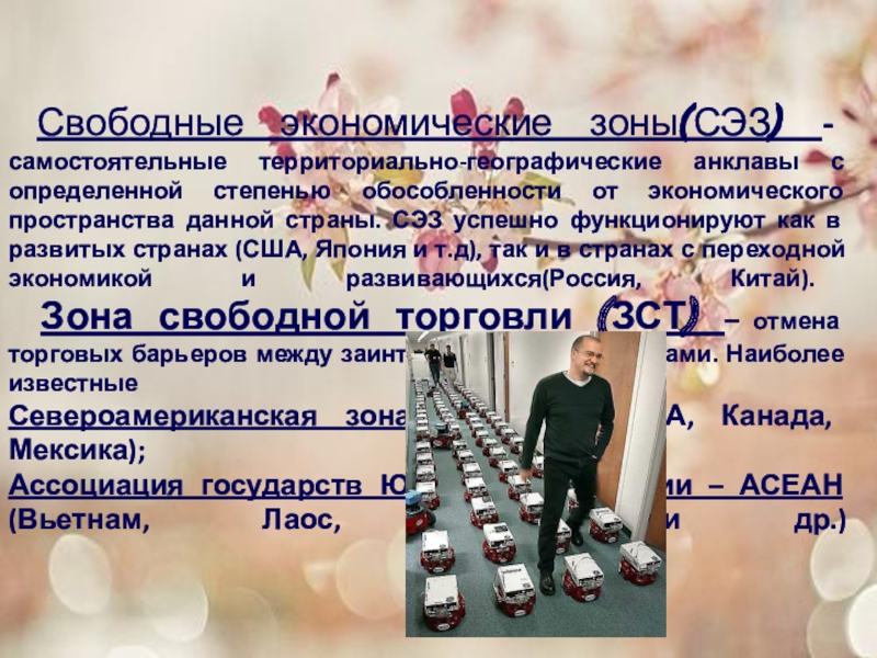 Слайд 13 Свободные экономические зоны(СЭЗ) - самостоятельные территориально-географические анклавы с определенной степенью