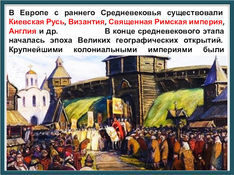 империя, Англия и др. В конце средневекового этапа началась эпоха Великих географических открытий. Крупнейшими колониальными империями были Испания и Португалия.