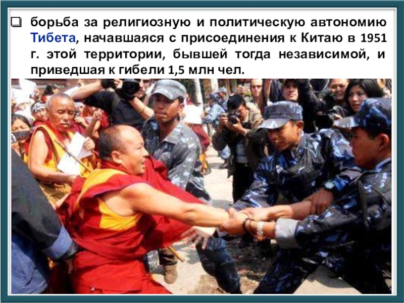 Слайд 43борьба за религиозную и политическую автономию Тибета, начавшаяся с присоединения к