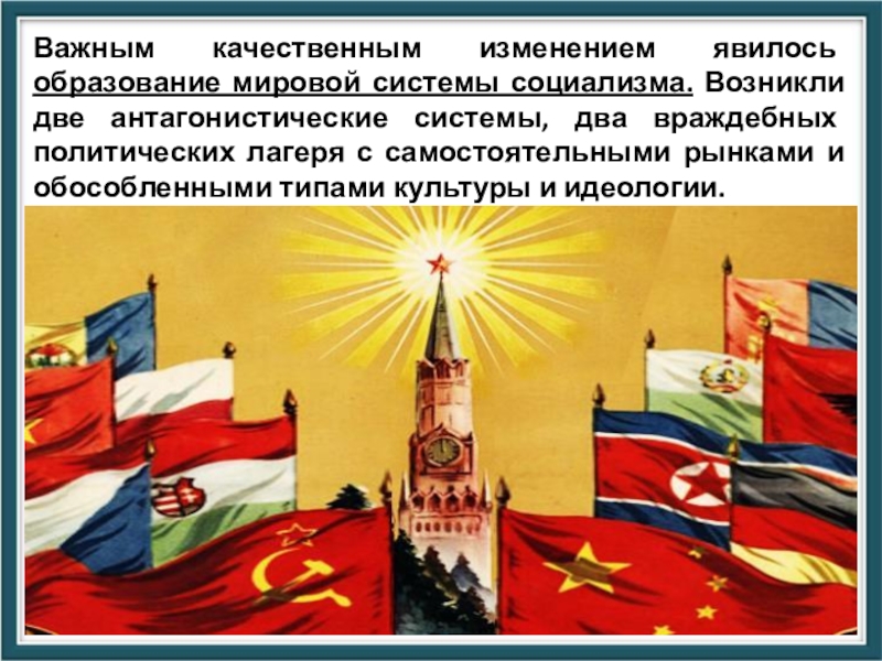 Слайд 20Важным качественным изменением явилось образование мировой системы социализма. Возникли две антагонистические