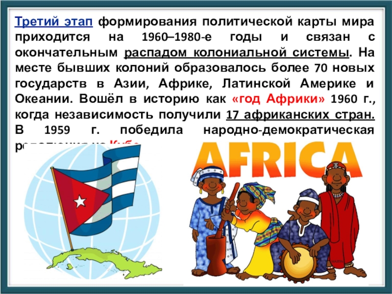 Слайд 23Третий этап формирования политической карты мира приходится на 1960–1980-е годы и
