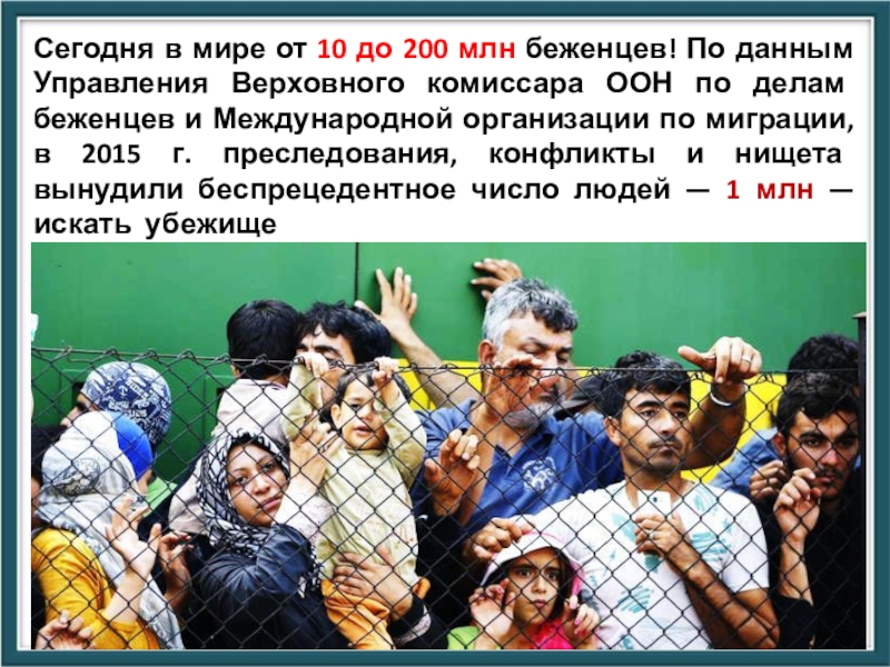 Слайд 35Сегодня в мире от 10 до 200 млн беженцев! По данным