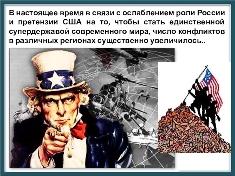 США на то, чтобы стать единственной супердержавой современного мира, число конфликтов в различных регионах существенно увеличилось..