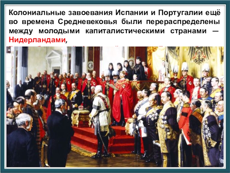 Слайд 10Колониальные завоевания Испании и Португалии ещё во времена Средневековья были перераспределены