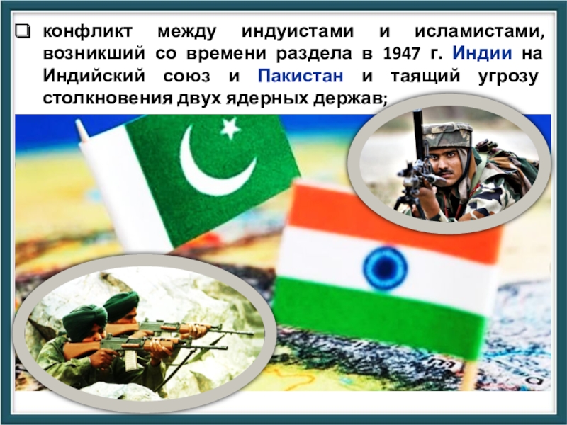 г. Индии на Индийский союз и Пакистан и таящий угрозу столкновения двух ядерных держав;