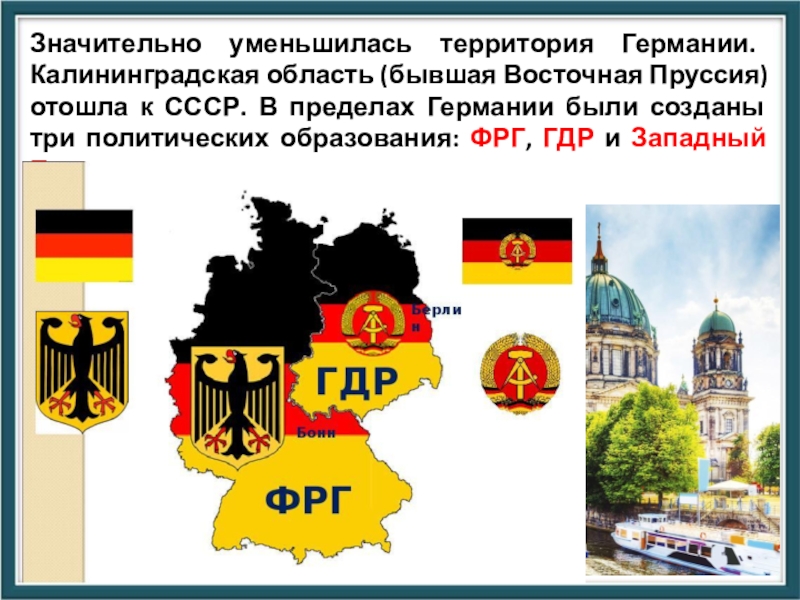 СССР. В пределах Германии были созданы три политических образования: ФРГ, ГДР и Западный Берлин.