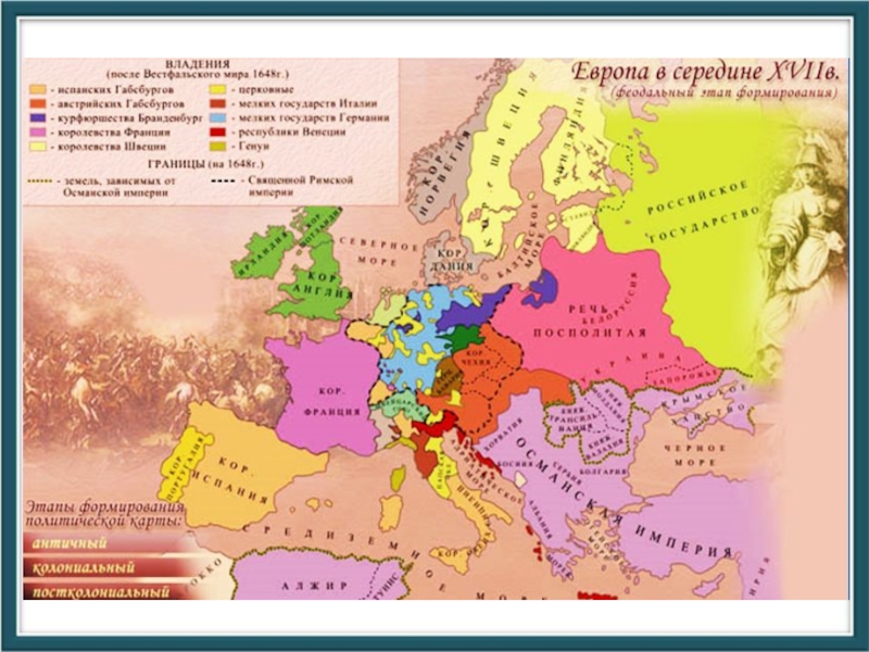Слайд 9Новый период создания политической карты мира продолжался с середины ХVII в.