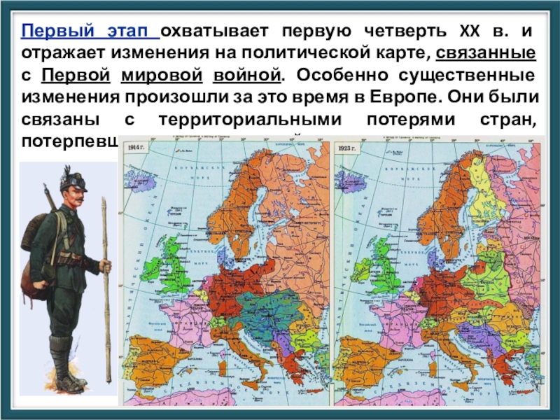 политической карте, связанные с Первой мировой войной. Особенно существенные изменения произошли за это время в Европе. Они были связаны с территориальными потерями стран, потерпевших поражение в войне.