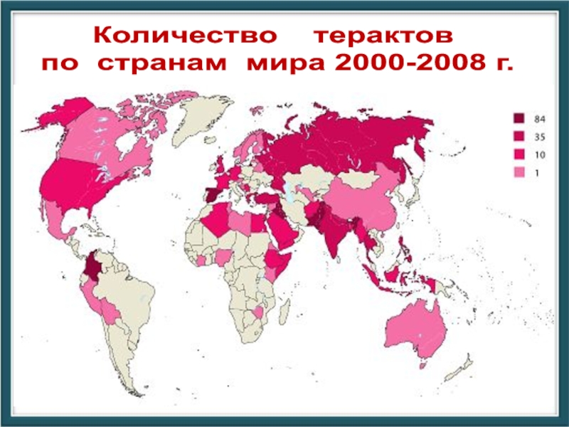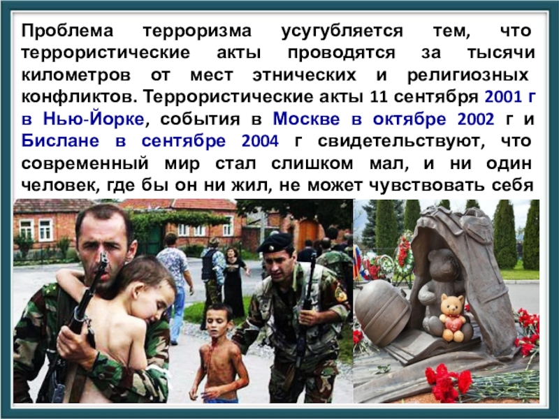 Слайд 47Проблема терроризма усугубляется тем, что террористические акты проводятся за тысячи километров