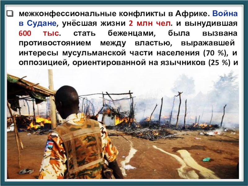 Слайд 38межконфессиональные конфликты в Африке. Война в Судане, унёсшая жизни 2 млн