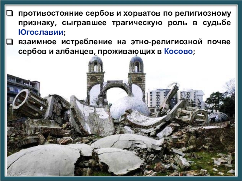 Слайд 42противостояние сербов и хорватов по религиозному признаку, сыгравшее трагическую роль в