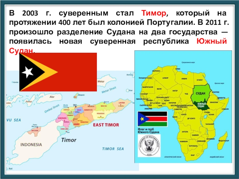 Слайд 29В 2003 г. суверенным стал Тимор, который на протяжении 400 лет