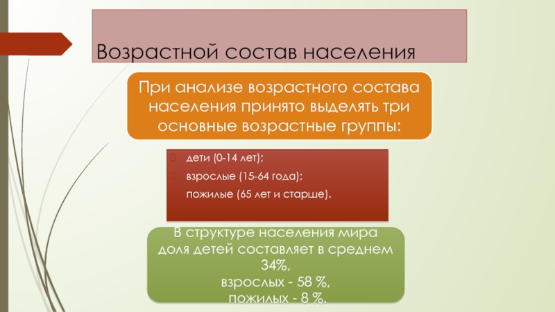 При анализе возрастного состава населения принято выделять три основные возрастные группы: