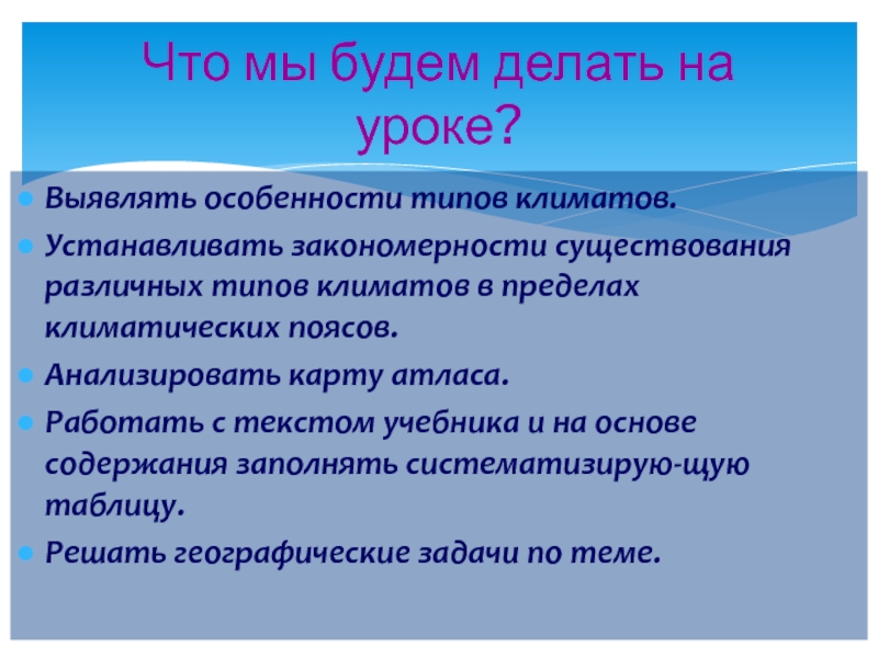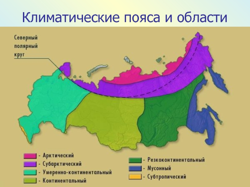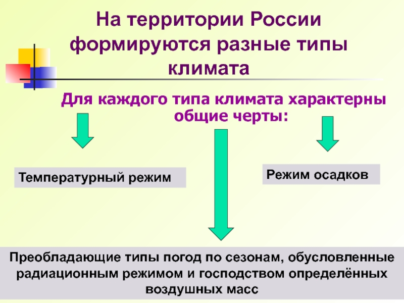 Преобладающие типы погод по сезонам, обусловленные радиационным режимом и господством определённых воздушных масс
