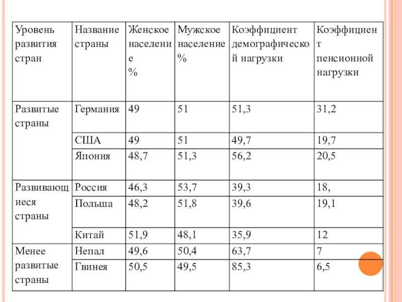 Презентация, доклад урока географии 10 класс Структура населения