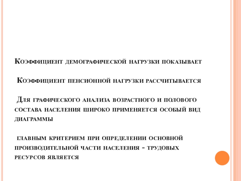 Слайд 6Коэффициент демографической нагрузки показывает Коэффициент пенсионной нагрузки рассчитывается Для графического