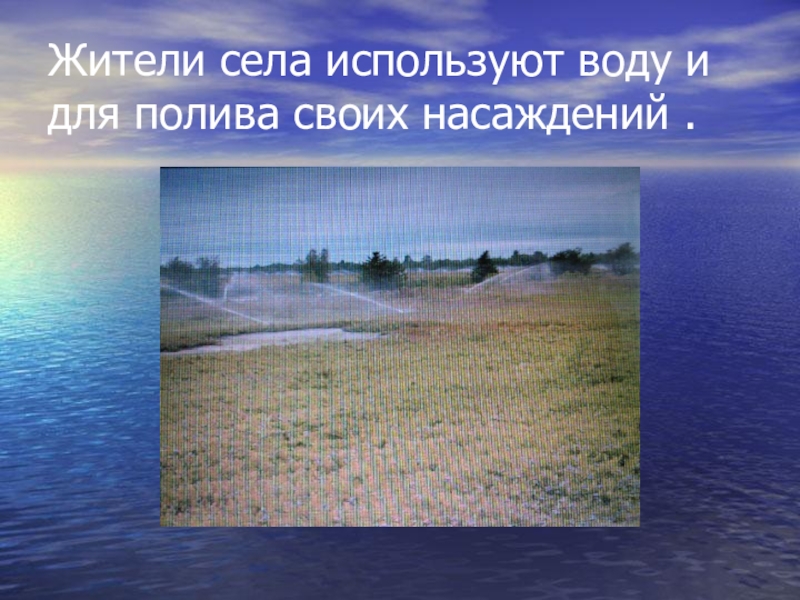 Слайд 8Жители села используют воду и для полива своих насаждений .